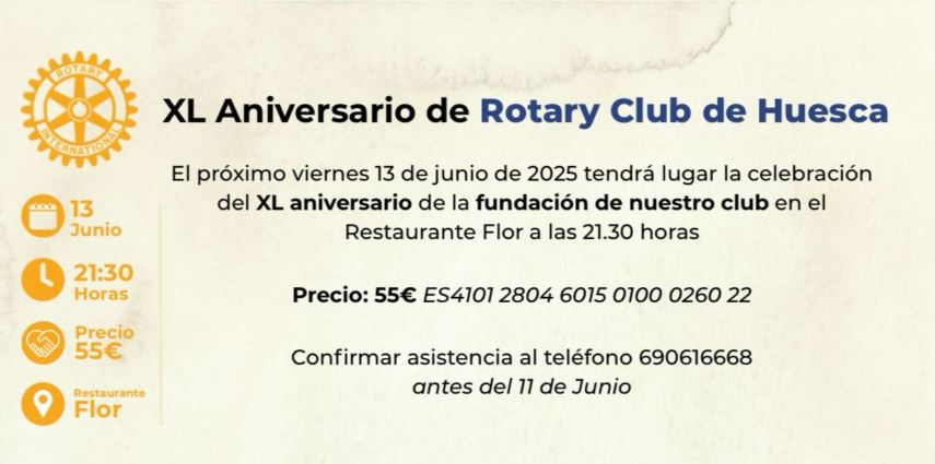 Acto del XL aniversario de la fundación del Club que se celebrará el día 13 de Junio de 2025, a las 18 horas en el Colegio de Santiago del Ayuntamiento de Huesca.